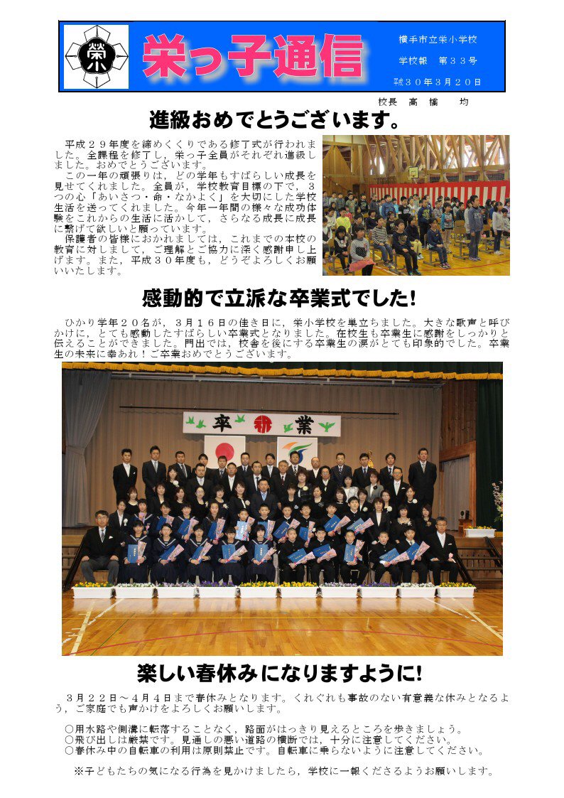 ⇒栄っ子通信を PDF判で表示 ⇒栄小学校の公式ブログ http://blog.goo.ne.jp/yokote_sakaesho